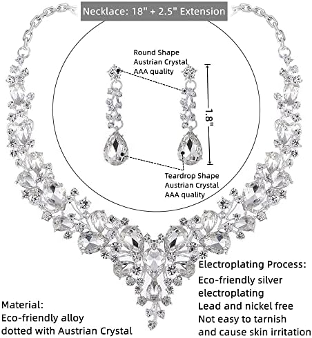 Crystal Bridal Wedding Jewelry Sets for Women Rhinestone Teardrop Crystal Statement Choker Necklace Drop Earrings Link Bracelets Rings Teardrop Jewelry Set for Brides Bridesmaids