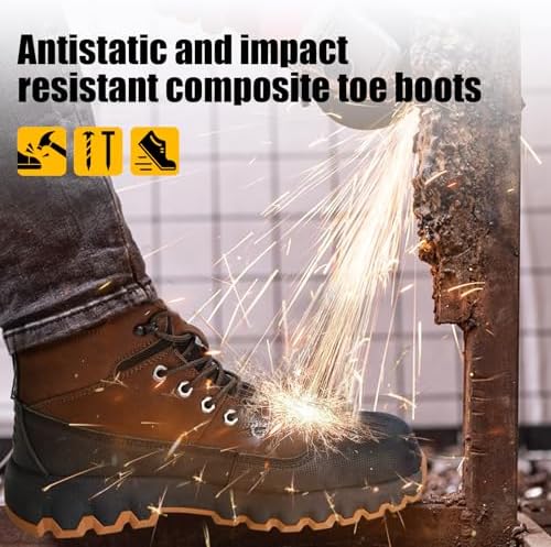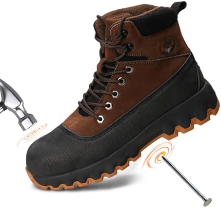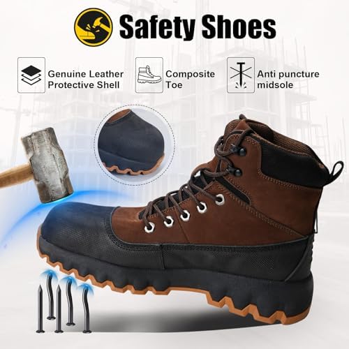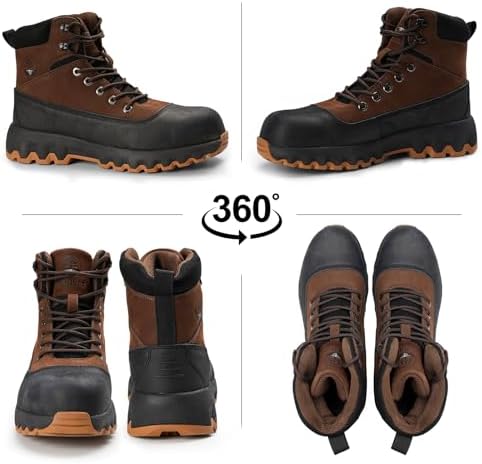 Sponsored Ad - Mens work boots Composite Toe Boots for Men Genuine Leather Rubber Sole No Slip Waterproof Shoes Industrial & Construction Safety boots