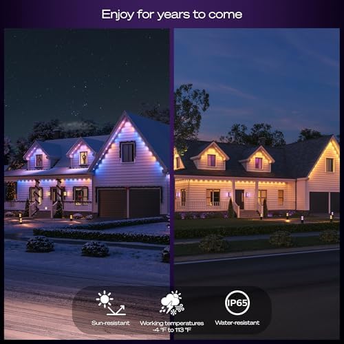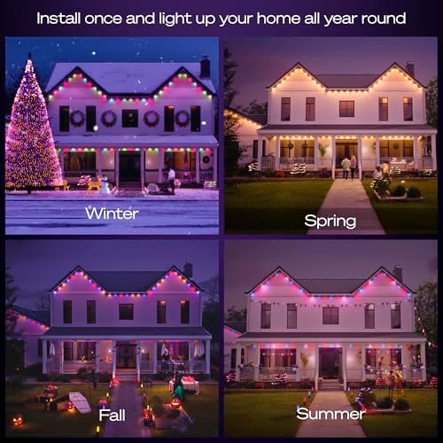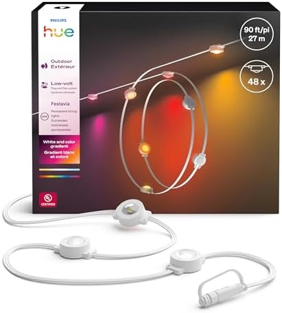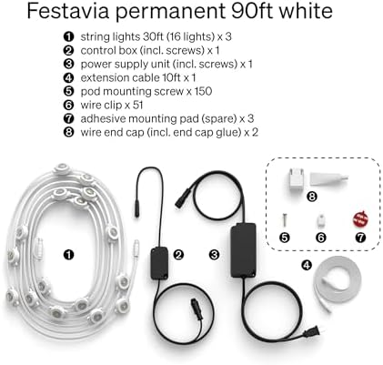 Festavia 90ft Permanent Outdoor String Lights, 48 Dimmable Lights, 55 Lumens Each, Weatherproof, Water-Resistant, White Wire, Color Ambience, Bridge Required