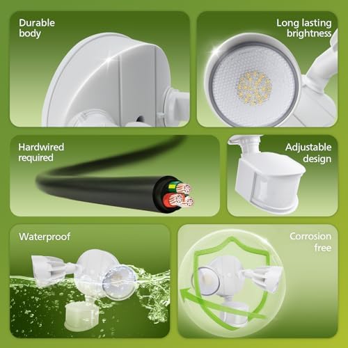 Sponsored Ad - 44W 4200 lm LED Security Light Outdoor w/PIR Motion Sensor, 5000K Daylight Flood Light, Waterproof, Dusk to Dawn, 2 Heads, 4 Modes