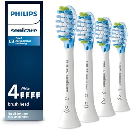 C3 Two-in-One - Genuine Replacement Electric Toothbrush Heads, White, 4 Pack One Year Supply, HX9044/65