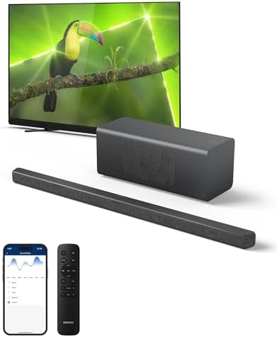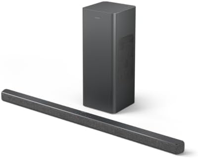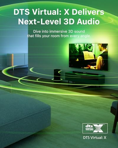B6309 2.1 Channel Soundbar with Wireless Subwoofer,3D Surround Sound with DTS Virtual:X & Dolby Atmos,Easy Setup with Roku TV Ready™,APP or Remote Control,HDMI eARC,Slim Design,Dark Grey