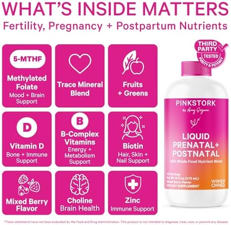 Sponsored Ad - Pink Stork Liquid Prenatal Vitamins for Women - Berry Flavor - Organic Food Blend - for Fertility, Pregnancy, Postpartum- Morning Sickness Support - Breastfeeding and Lactation - 32 Ser