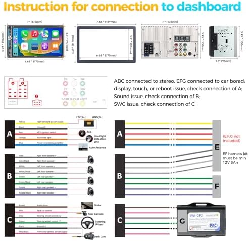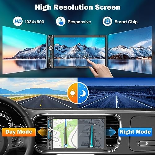 7" Wireless Double Din Car Stereo Apple Carplay Radio Screen for Car Audio Receivers, Bluetooth 5.3 Car Play Android Auto Touchscreen, 240W 4.2 CHN 2 Subwoofers Outputs, Backup Camera, SWC, FM/AM