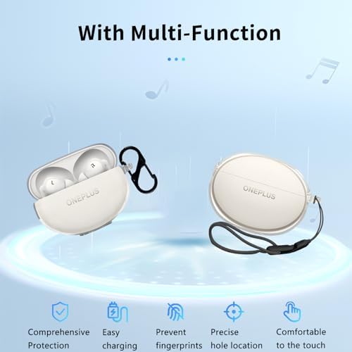 for OnePlus Buds Pro 3 Case Cover, Wireless Earphone TPU Protective Cover(with Carabiner + Lanyard) Drop-Proof, Scratch-Proof, Shock-Proof, Mountable and Rechargeable Waterproof and dustproof (Clear)