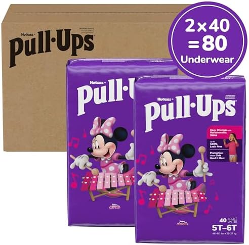 Sponsored Ad - Girls' Potty Training Pants, Size 5T-6T Training Underwear (46+ lbs), 80 Count (2 Packs of 40)