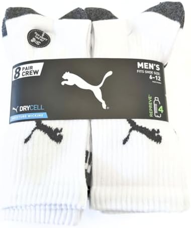 Men's Crew Socks, 8 pair, Fits Shoe Sizes 6-12, White