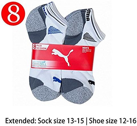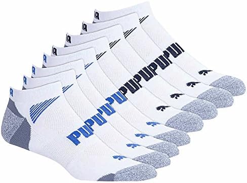 Mens No show Sport Socks, Moisture Control, Arch Support (8 Pair) (Regular Shoe Size: 6-12, White)