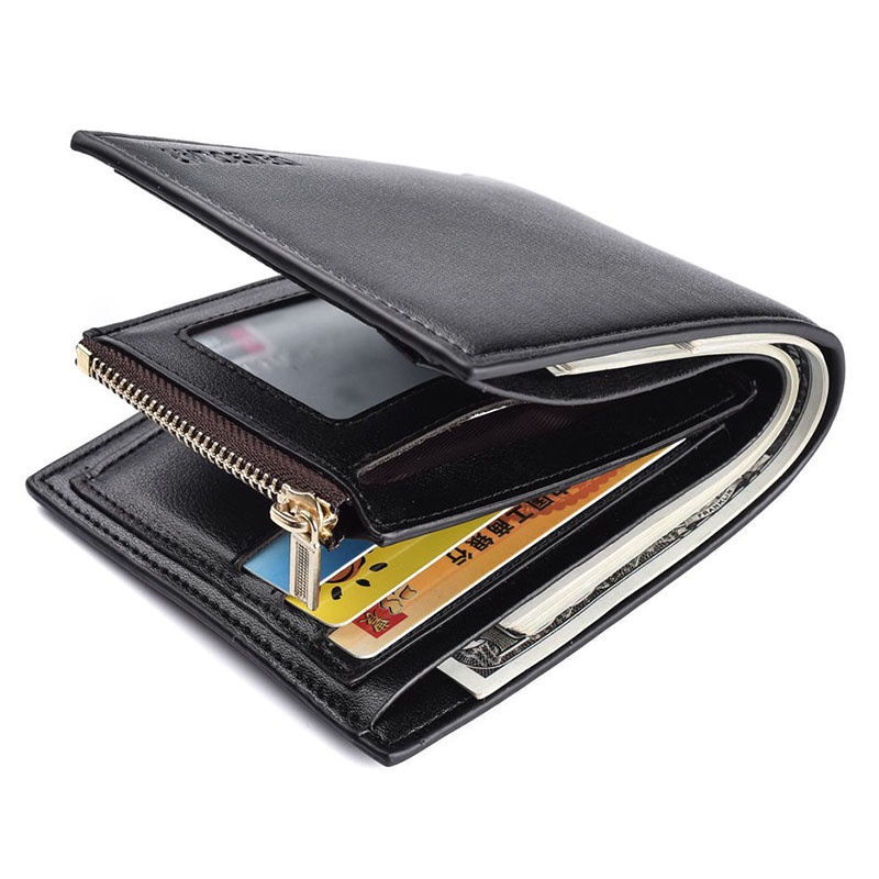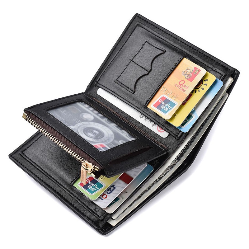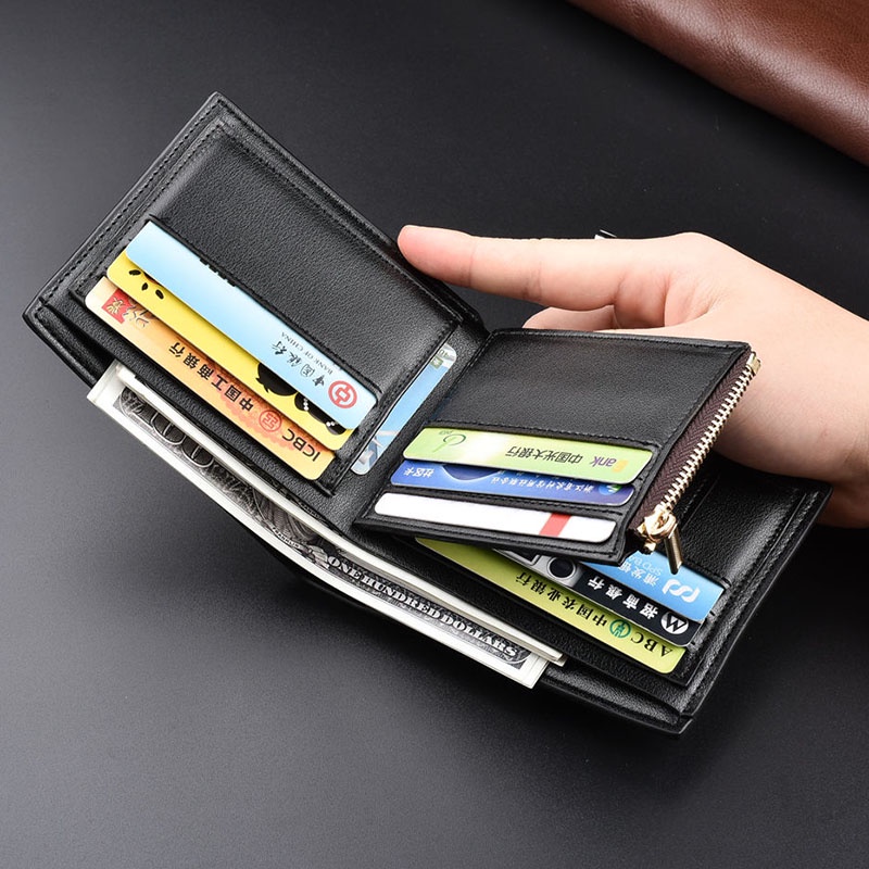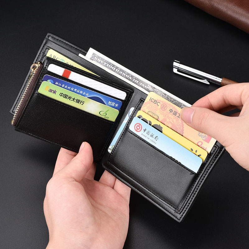 ♝READY STOCK♝Multi-card Slots and With Zipper Coin Pouch Mens Short Trifold Wallet for Men PU Leather Wallet Men