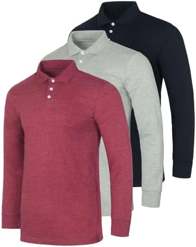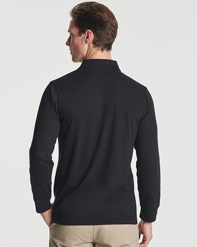 3 Pack Men's Cotton Jersey Long-Sleeve Polo Shirt - Casual Workwear Office (Available in Big & Tall)