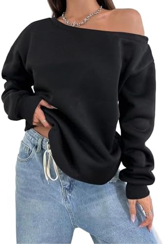 Remidoo Womens Off Shoulder Sweatshirt Drop Shoulder Oversized Long Sleeve Pullover Top