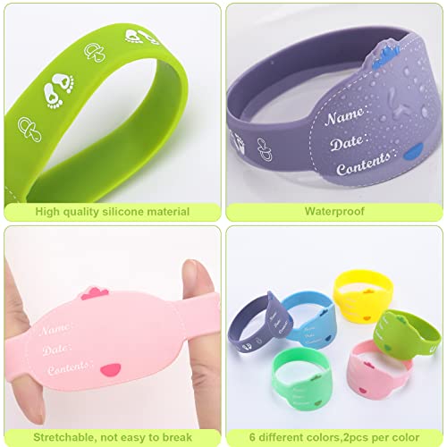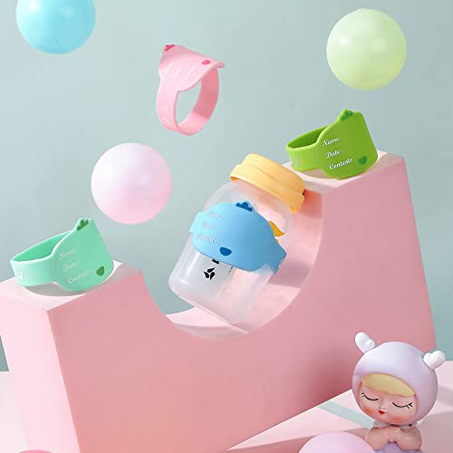 Baby Bottle Labels for Daycare 12 Pieces Reusable Silicone Daycare Labels Original Daycare Waterproof Water Bottle Name Bands Writable Baby Name Labels Tags Day Care Essentials, 6 Colors