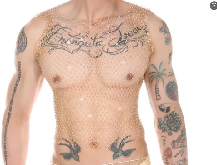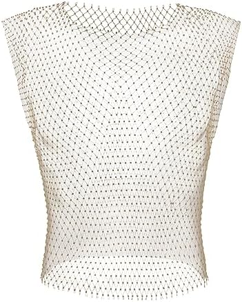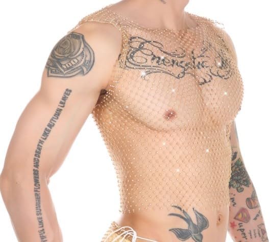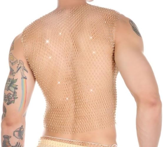 Men's Rave Outfit Sheer Rhinestone Top Sleeveless Tanks Crop Top Fishnet Vest Music Festival Shirt