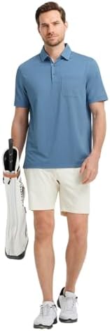 Mens Golf Shirts Short Sleeve Dry Fit Jacquard Performance Moisture Wicking Casual Pocket Collared Polo Shirts for Men