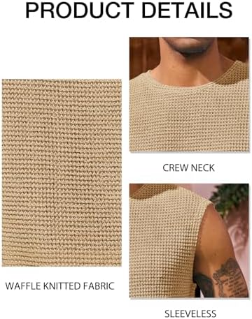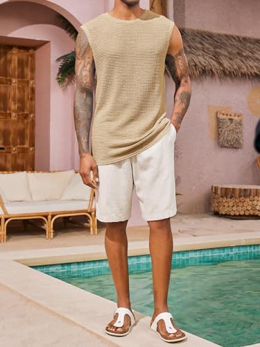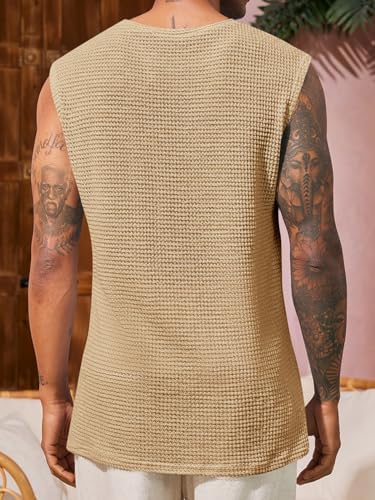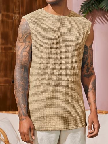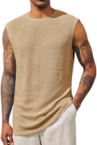 Mens Waffle Tank Tops Sleeveless T-Shirts Athletic Muscle Summer Beach Hippie Shirts