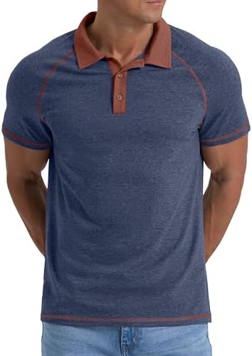 Sponsored Ad - Mens Short Sleeve Polo Shirts Cotton Golf Shirts Fashion Casual Raglan