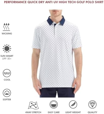 Sponsored Ad - Mens Golf Shirts Short Sleeve Moisture Wicking Dry Fit Print Performance Athletic Casual Golf Polo Shirts for Men