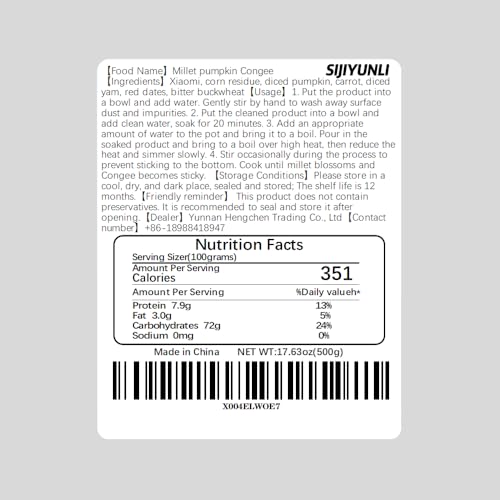 SIJIYUNLI-Millet pumpkin Congee 500g/17.63oz nutritious breakfast, coarse grain porridge, high calcium, 0 fat, no sucrose, whole grains, pregnant women, children, and the elderly