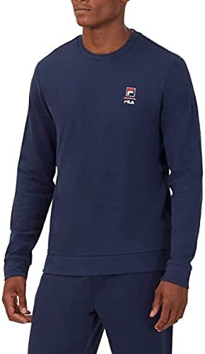 Mens Long Sleeve Crew Neck Lightweight Sweatshirt (Peacoat/Chinese Red, Small)