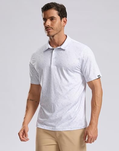 Men's Golf Shirt Short Sleeve Dry Fit Polo Moisture Wicking Print Collared Golf Shirts for Men Casual Lightweight