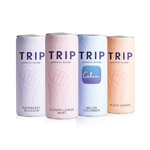 Trip Mindful Blend, Lightly Sparkling Adaptogen Seltzer, Mocktail w/ 120mg Magnesium Citrate with Ashwagandha, Lions Mane & L Theanine, No Added Sugar, Vegan, Original Variety Pack, 12 Oz, 12Pk