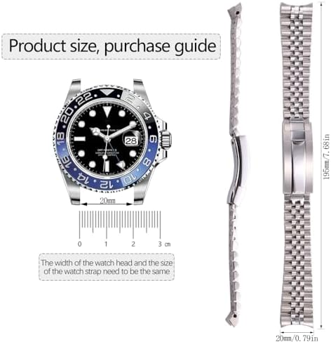 20mm Solid Stainless Steel Compatible with Rolex Jubilee with Oyster Clasp Watchbands Curved Interface Bracelet Fine Tuned Watch Buckle