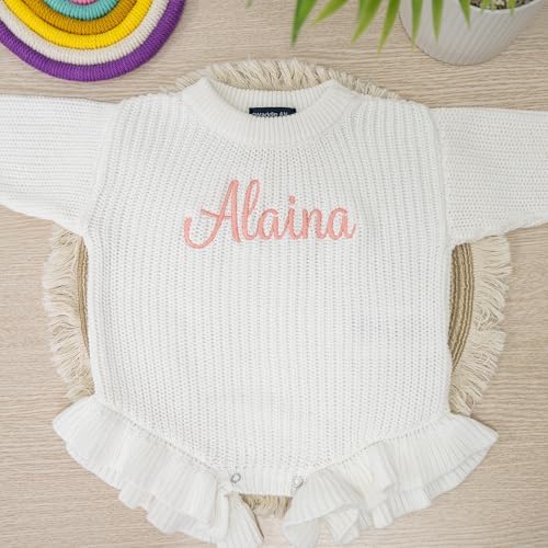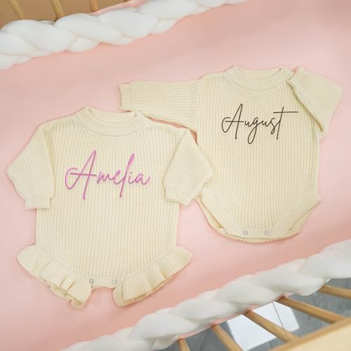 Sponsored Ad - SwaddleAn Personalized Chunky Knit Sweater Romper, Custom Baby Name, Embroidered Baby Outfit, Infant One-Piece Keepsake