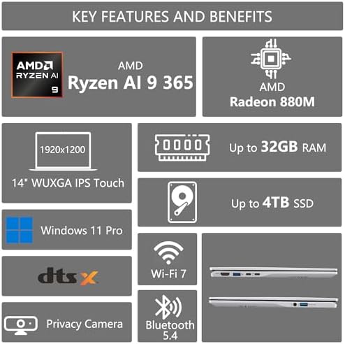 Swift 14 Portable Copilot+ AI PC Laptop | 14" WUXGA Matte Touch | AMD 10-core Ryzen AI 9 365 (Up to 50 NPU TOPS - Up to 73 GPU TOPS) | 32GB DDR5 2TB SSD | Backlit Wi-Fi7 Win11Pro w/DLCA Accessory