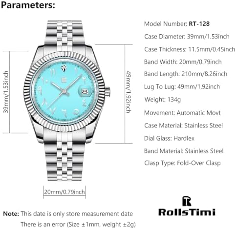 Sponsored Ad - Men's Watches 39mm Automatic Stainless Steel Mechanical Wrist Watch for Men, Arabic Numerals Dial, Screw-in Crown, Auto Date