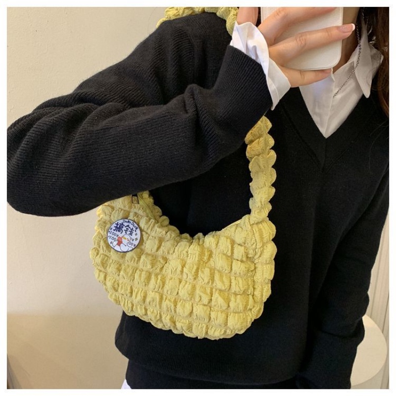 True to the description: dung Material: raw fabric ruffled Color: light green yellow green Fast delivery, comes with a free battery, the bag can hold a lot of things