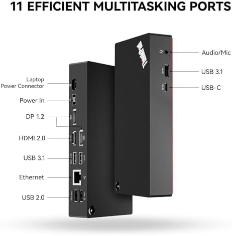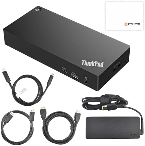 Thinkpad 40AY0090 Universal Hybrid USB-C with USB-A Docking Station for Lenovo Laptop, 3 External Displays, Comes with ITSPWR HDMI 4K Cable + DP Cable+ Cleaning Cloth