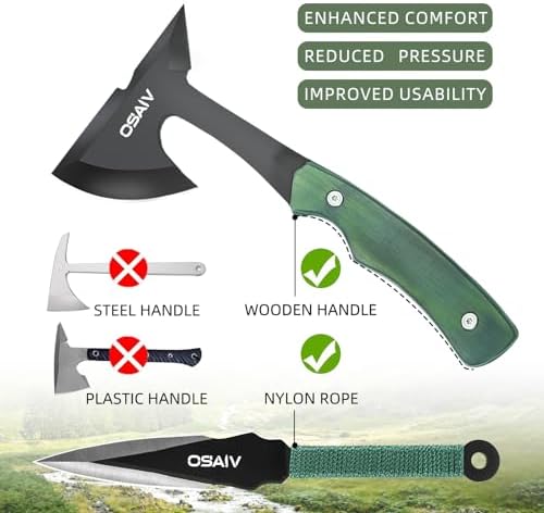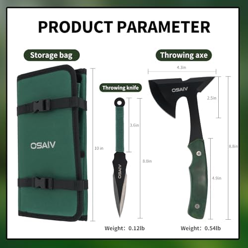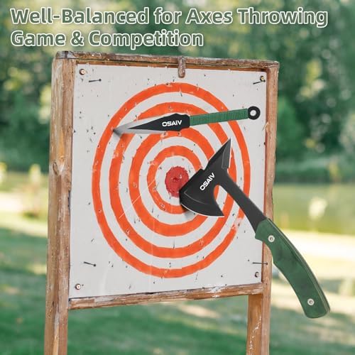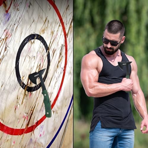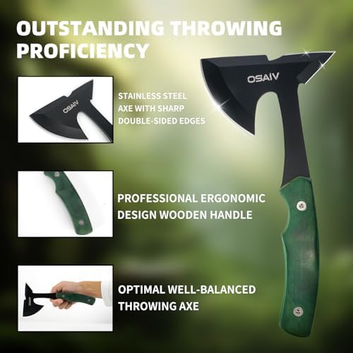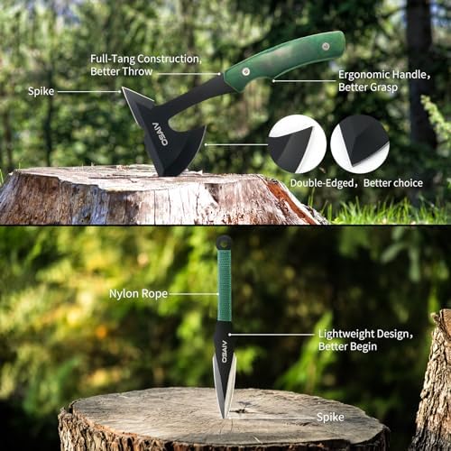 Throwing Axes Set, Full Tang Stainless Steel Well Balanced Hatchet with Wooden Handle, 8.8in Double Bit Axe for Backyard Recreation and Competition, 3 Pack with Storage Bag and Whetstone