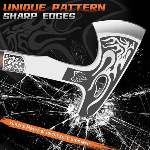 TIVOLI 12.2" Camping Axe, Flame - Patterned Survival Hatchet with Nylon Sheath, High Carbon Steel Blade & Comfortable Ergonomic Wood Grip, Outdoor Bushcraft Axe for Camping, Hiking, Chopping, Hunting