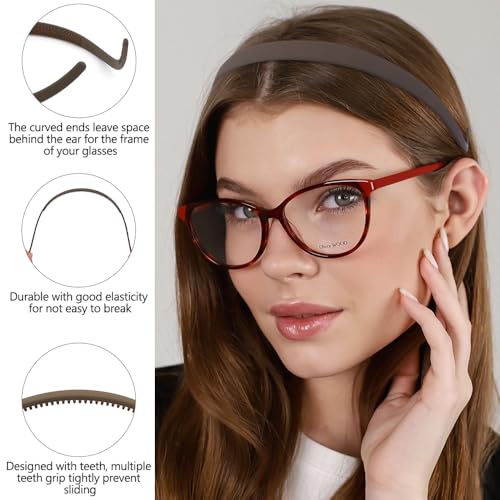 TOBATOBA Flex No Pressure Headbands for Glasses Wearers, Sunglasses Headband No Headache Comfortable Headbands Non Slip, Matte Plastic Hairbands with Teeth, Hair Accessories for Women Girls