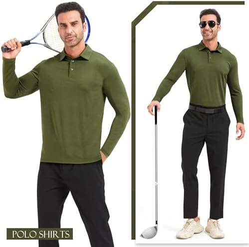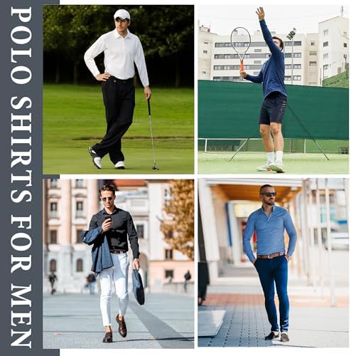 5 Pack Polo Shirts for Men Long Sleeve Quick Dry Mens Polo Shirts Golf T Shirt Moisture Wicking Casual Workout