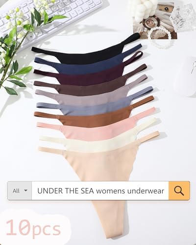 UNDER THE SEA 10 Pack G String Thongs for Women Seamless Underwear Low Rise No Show Thong Stretch Womens Panties Sexy XS-XL
