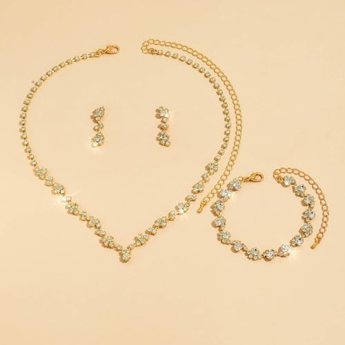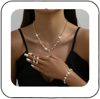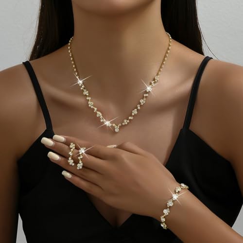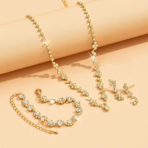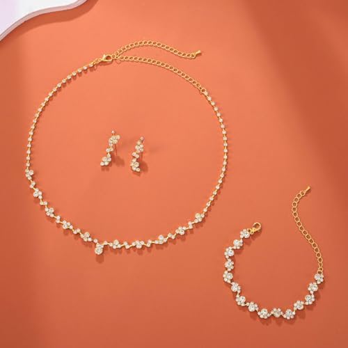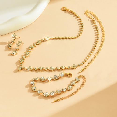 Unicra Bride Crystal Necklace Earrings Set Bridal Wedding Jewelry Sets Rhinestone Choker Necklace Costume Jewelry Set for Women and Brides (3 piece set - 2 earrings and 1 necklace)