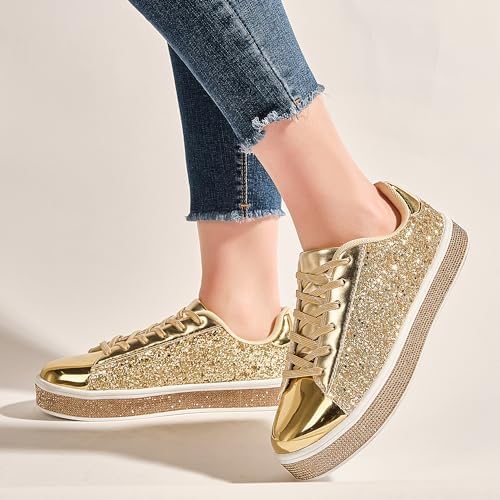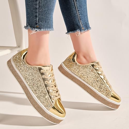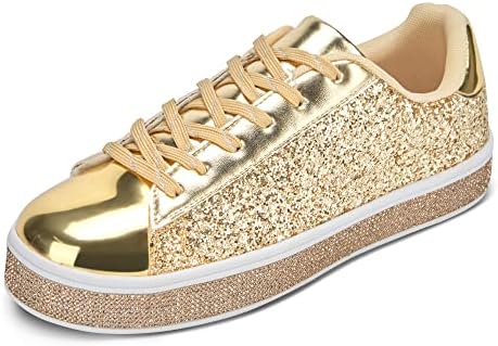 Sponsored Ad - Women's Glitter Tennis Sneakers Neon Dressy Sparkly Sneakers Rhinestone Bling Wedding Bridal Shoes Shiny Sequin Shoes