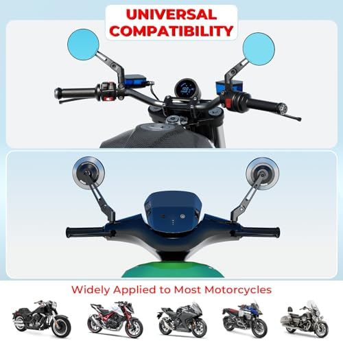Sponsored Ad - Aluminum Alloy Rainproof Foldable Motorcycle Mirrors with M8 M10 Bolts, CNC Machined Anti-Glare Blue Lenses Rear View Mirrors, Multi-Angle Adjustable for Motorcycle ATV Moped Scooter Cr