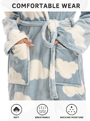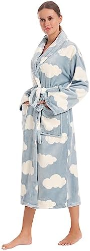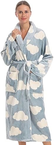 Womens Robes Plush Bathrobe Long Warm Fleece Robe