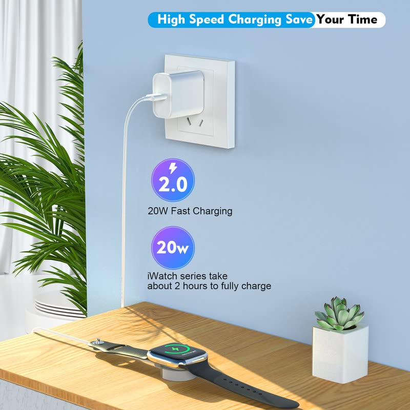 Fast Charger for Apple Watch Charger, USB C 20W iPhone Watch Charger Plug Adapter & Long 6.6FT iWatch Portable Wireless Fast Charging Cable Cord Compatible with Apple Watch Series 9/8/7/SE/6/5/4/3/2/1