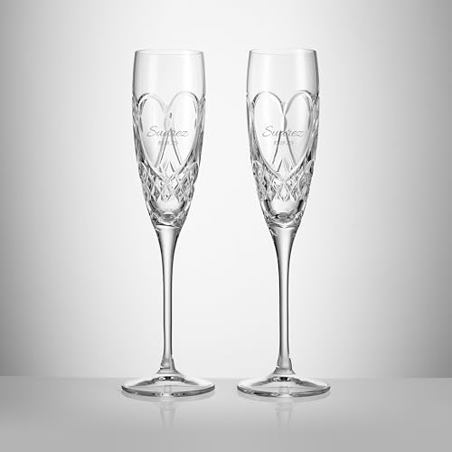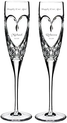 Sponsored Ad - Waterford Personalized True Love Wedding Champagne Flutes, Set of 2 Custom Engraved Crystal Champagne Glasses for Wedding, Anniversary, Bride and Groom