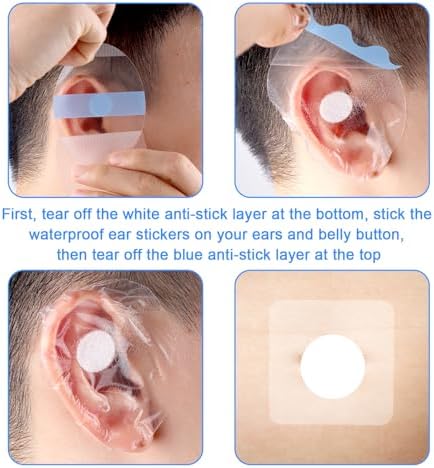30pcs Baby Ear Covers for Bath + 30pcs Waterproof Belly Button Sticker Band Patch Wrap Pads, Waterproof Ear Protection Cap Plugs Stickers for Kids Toddler Newborn Shower Swimming Water Activities