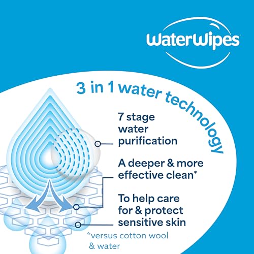WaterWipes Sensitive+ Newborn & Baby Wipes, 3-In-1 Cleans, Cares, Protects, 99.9% Water, Unscented & Hypoallergenic, 720 Count (12 Packs)