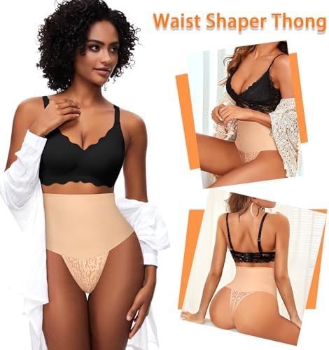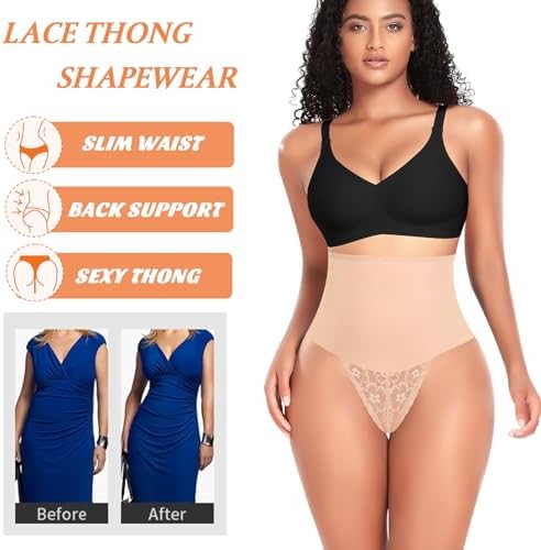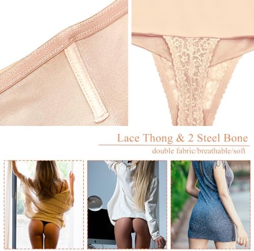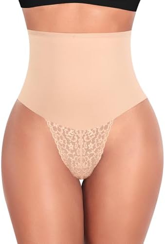 Werena Tummy Control Thong Shapewear for Women Mid High Waisted Body Shaper Underwear Lace Shaping Thong Girdle Panties