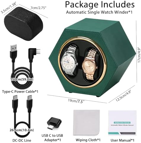 Watch Winder for Automatic Watches,Automatic Watch Winder Box,Double Watch Winder with Quiet Japanese Motor,USB Type C
