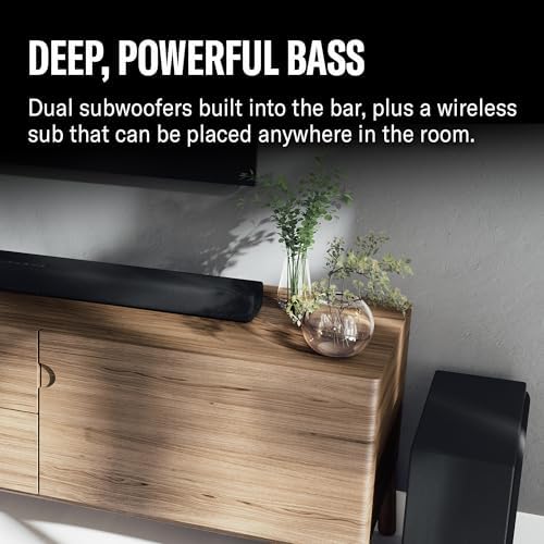 True X Bar 50A Dolby Atmos Sound Bar with Wireless Subwoofer, Wi-Fi, Music Streaming, Optional Wireless Surrounds (Black)