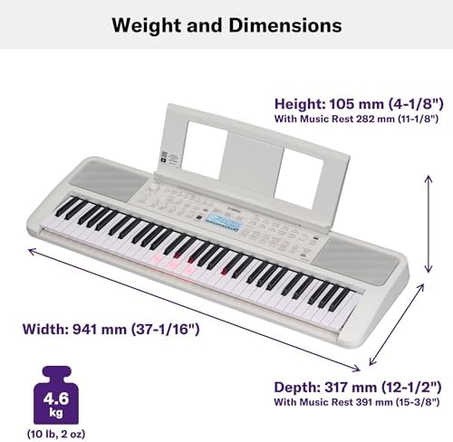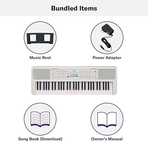 61-Key Portable Keyboard with Lighted Keys for Easy Learning, Music Rest, and Power Adapter EZ310