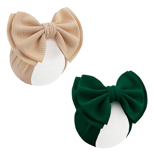 YanJie 2PCS 7'' Super Soft Knot Headbands with Hair Bows Infant Toddlers Kids Hair Accessories Beige Dark Green Headband for Newborn Baby Girls
