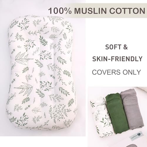 Muslin Baby Lounger Cover for Snuggle Me Lounger,3 Pack 100% Cotton Newborn Baby Lounger Pillow Covers,Soft and Breathable Baby Nest Slipcover for Boys Girls (Covers Only